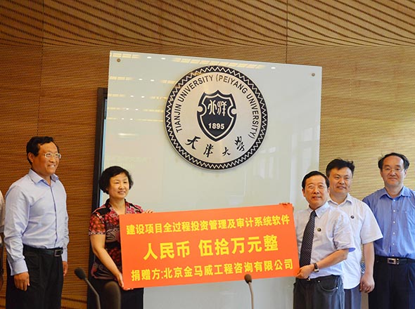 2014年5月21日我司向天津大學捐贈“建設項目全過程審計系統”軟件,并向該校北洋教育發展基金會捐贈一百萬元基本建設基金,大力支持該校教學工作。