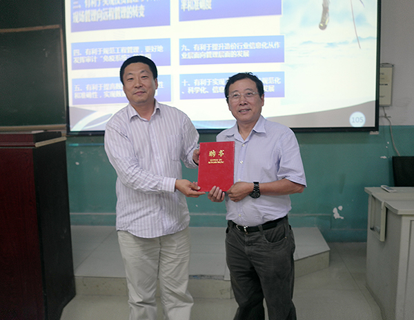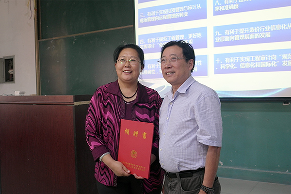 2014年9月13日,應長春工程學院邀請,我公司董事長周和生先生為該校管理學院學生講授“建設項目投資管理及審計信息化”課程,且受聘為長春工程學院客座教授。我司向長春工程學院捐贈“建設項目全過程投資管理及審計系統”軟件(價值145萬元),大力支持該校教學工作。